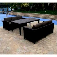Обеденный комплект с двумя диванами и большим столом является верным решением для загородного дома. Не занимает много места, прост в уходе и может использоваться вне помещений. Выполнен из искусственного ротанга, который устойчив как к высоким, так и низким температурам. Подушки в комплекте.