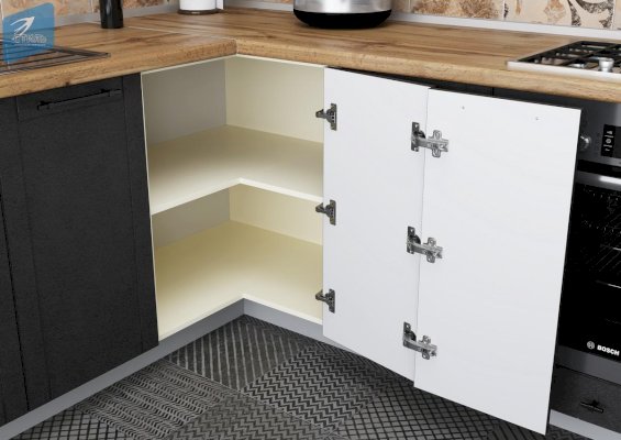 Угловые верхние и нижние шкафы с полным открытием (система двойных петель «Double loop»)