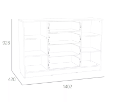 В дизайне тумбы Оливия НМ 040.35 X прослеживается четкая симметрия, которая придает внешнему виду модуля цельность. Тумба центральной части оснащена четырьмя выдвижными ящиками для хранения документов, аксессуаров и мелочей. Справа и слева от ящиков находятся две одинаковые секции с полками для одежды. Полки в сочетании с выдвижными ящиками позволят хранить в тумбе максимум вещей.