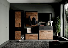 Компактная тумба для оформления прихожей. За откидной дверью 4 отделения. В отделениях тумбы Вы сможете хранить необходимые предметы (средства для ухода за обувью, мелкие аксессуары и т.д.).