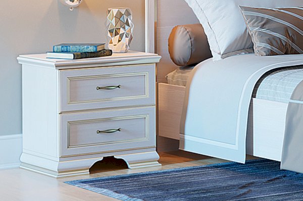Для создания уютного и комфортного спального места в комнате помимо кровати вам обязательно пригодятся прикроватные тумбы. В классической коллекции «Сиена» тумбы имеют стандартную и очень практичную конструкцию, два выдвижных ящика созданы для хранения аксессуаров, предметов для ухода или журналов, а столешница тумбы удобна для размещения ночника или любимой книги.