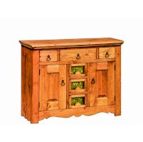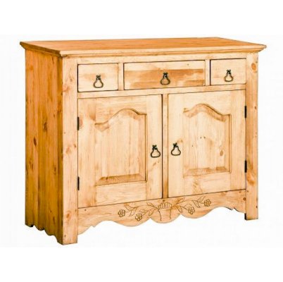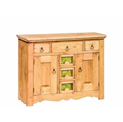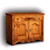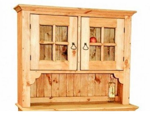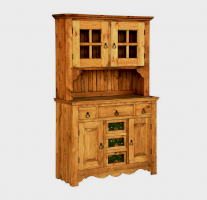 Невероятно красивый, вместительный буфет в стиле Прованс, состоящий из нижней закрытой тумбы и верхней части с двумя резными дверцами. За стеклянными дверцами можно хранить праздничные сервизы, семейные раритеты, интерьерные вещицы.  Задние стенки всех буфетов набраны из дощечек массива сосны. Также из массива сосны набраны днища ящиков. В конструкции нет элементов из фанеры, ДСП, или МДФ.