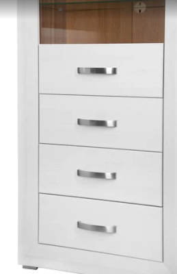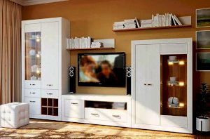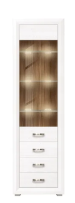 MALTA – коллекция мебели, состоящая из множества функциональных модулей, которые позволяют обустроить любую комнату. Великолепные белоснежные фасады коллекции Malta удачно контрастируют со вставками из «орех лион», продолговатые  металлические ручки добавляют изящества, а подсветка стеклянных полок выгодно подчеркивает древесную структуру дерева.