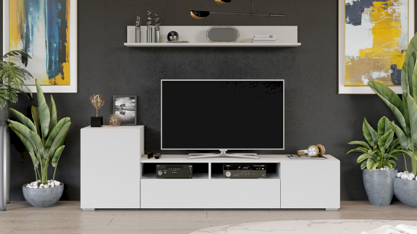 Данная модель весьма вместительна, ведь при помощи разработанной комбинации закрытых напольных секций и навесной полки создается идеальная система для хранения различных предметов, которые используются в повседневной жизни. Она выполняет свои функции, а места занимает меньше. В результате драгоценное пространство останется нетронутым.