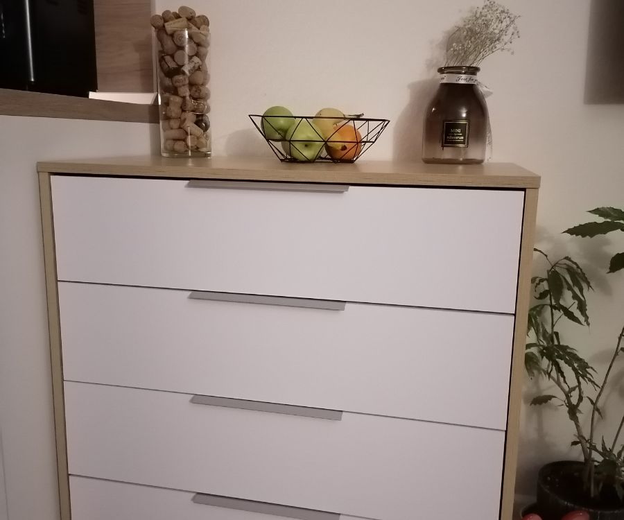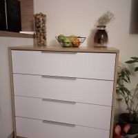 Комод очень понравился,качество супер,простой в сборке,ящики думала будут поглубже,но ничего для новорождённого самое то-вещи маленькие.