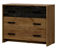 Комод создан в рамках коллекции мебели для спальни Лофт, но будет также актуально смотреться в прихожей и гостиной. Комплектуется тремя выдвижными ящиками на роликовых направляющих. Фасад верхнего в декоре "камень темный" добавляет модулю стиля и гармонично сочетается с древесной текстурой корпуса. Модуль подойдет для хранения белья, аксессуаров и вещей в сложенном виде.