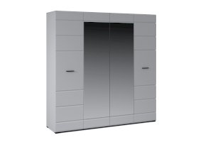 Распашной 4х дверный шкаф для одежды Йорк выполнен в современном стиле, сочетает в себе функциональность и эффектный внешний вид: строгая горизонтальная фрезеровка фасадов, контрастного черного цвета ручки и задняя стенка из ХДФ, элегантный белый цвет. Блеск глянцевых фасадов High Gloss из МДФ и зеркала наполняют комнату светом, делают ее просторнее. Внутри предусмотрены вместительные секции для белья и отделение со штангой. Мебель выполнена из экологически безопасных и надежных материалов.