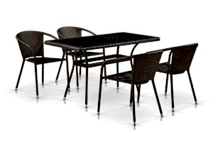В составе комплекта: стол и 4 кресла. Высококачественная лоза из полиротанга коричневого цвета стойкая к любым атмосферным явлениям. Крепкий стальной каркас с полимерным антивандальным покрытием и отличным качеством сварки. Изделие сплетено вручную нашими мастерами под жестким контролем качества на каждом этапе производства. Лоза максимально приближена по рельефу и текстуре к естественному материалу. Идеально подходит для использования на улице и внутри помещения в любую погоду. Не боится воды, солнца и минусовой температуры.