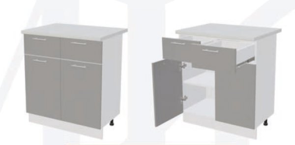 ШН2Я800 Шкаф нижний с 2-мя ящиками Белый глянец холодный/Мрамор глянец