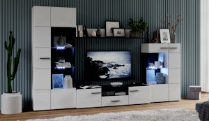 Современная стенка Невада – яркий представитель стиля минимализма, отличается высокой функциональностью и эстетичным внешним видом. Глянцевые белые фасады из МДФ и прозрачные витрины из закаленного стекла создают легкость и воздушность, а эффект блеска и отражения зрительно увеличивает пространство комнаты, добавляет света. Комбинированный контрастный корпус, ручки и задняя стенка черного цвета подчеркивают строгую геометрию линий и форм. Светодиодная подсветка делает акцент на дорогих для Вас вещах, таких как фото, статуэтки или посуда. Мебель выполнена из экологически безопасных и надежных материалов.