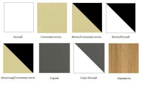 Возможные цвета кроваток: белый, слоновая кость, венге/слоновая кость, венге/белый, шоколад/слоновая кость, серый, серо-белый, карамель