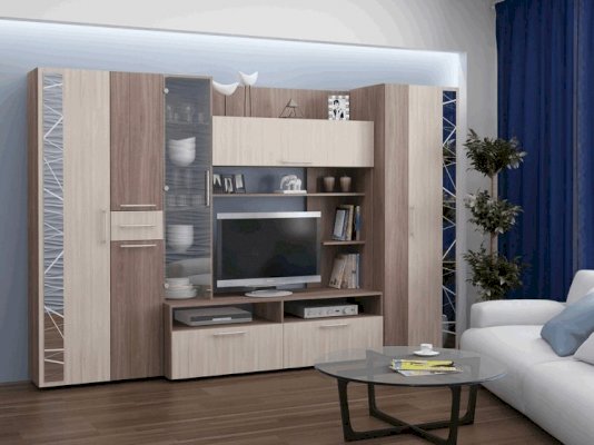 Гостиная Дарина- отличный вариант для оформления стильной и практичной обстановки в гостиной комнате. Композиция выполнена в современном дизайне, что позволяет оформить уютную и привлекательную обстановку.Строгость линий и сочетания цветов придадут интерьеру гостиной уникальный вид, а стеклянные вставки оригинальной формы сделают образ комплекта ультрасовременным. Мебель изготавливается из ЛДСП.
