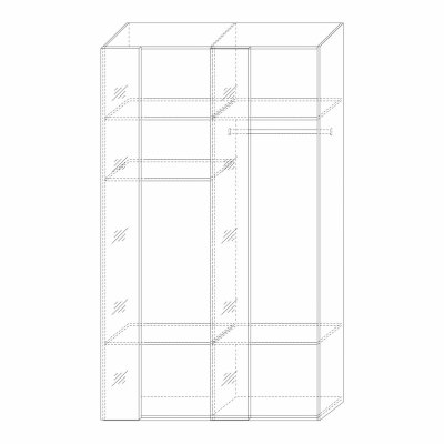 Представляем вашему вниманию вместительный и функциональный распашной шкаф. По сути модель является двухдверной, однако, за счет вставок украшенных зеркалом ширина модуля составляет 1400 мм и обеспечивает его отличную вместительность.