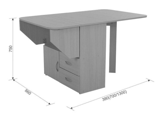 Длина разложенного столика, мм 1300