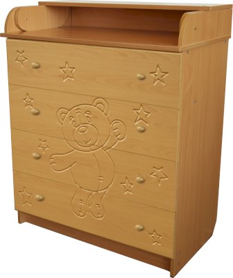 Вам понравится привлекательный внешний вид детского комода. На его лицевой части вы увидите углубленный декор в виде Мишки.