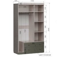 Трехстворчатый шкаф Юкка 25 (Аквилон)
