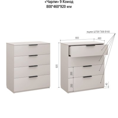 Наполнение: 4 выдвижных ящика на шариковых направляющих