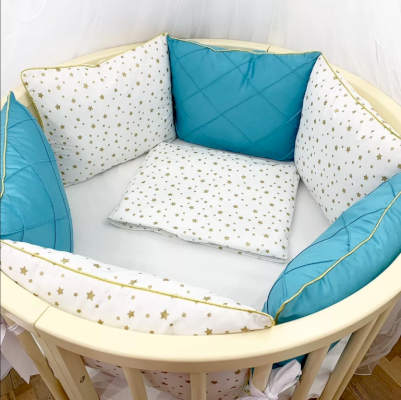 • 10 бортов-подушек со съёмными чехлами на молнии, размерами 34х30 см.