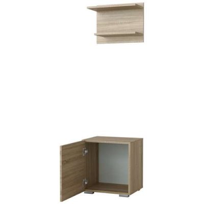 Тумба 1-створчатая с навесной полкой. Полка крепится к стене через навесные элементы.