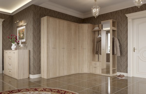 Прихожая «Элана» - воплощение современного дизайна и традиционного комфорта, которого покупатели ждут от мебельных производителей. Создатели данной прихожей пошли на маленькую хитрость для экономии пространства: «Элана» имеет очень интересное угловое расположение. В закрытых и открытых шкафах, по всей длине одного из которых расположено зеркало, поместится необходимое вам количество одежды, обуви, головных уборов, сумок и других необходимых вещей и важных мелочей. Количество шкафов зависит от желания заказчика. Также все модули прихожей «Элана» можно заказать по отдельности и скомплектовать по собственному желанию.
