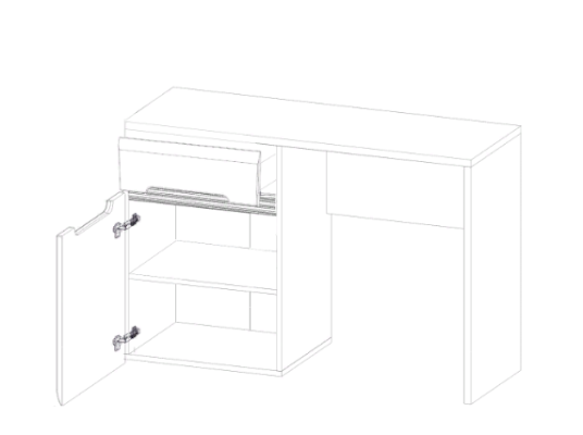 Одна сторона оборудована тумбой с выдвижным ящиком и нишей с распашной дверью.