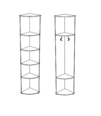 - В комплекте 4 полки и 2 крючка. Возможны разные варианты сборки (только с полками/ с полками и крючками).