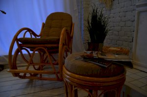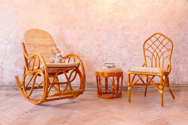 Кресло-качалка разборное из ротанга.