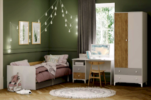 Шкаф «Морти» на высоких изящных ножках предназначен для тех, кто любит простоту и минимализм. Шкаф обладает модным сочетанием материалов и, благодаря характерным декоративным особенностям, понравится всем поклонникам скандинавского стиля. Отделение с полкой и штангой предназначено для хранения одежды на вешалках, головных уборов, коробок с аксессуарами. Два выдвижных ящика предназначены для сложенной одежды, аксессуаров, личных вещей.