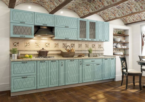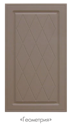 Набор кухонной мебели «Геометрия» получил свое название благодаря оригинальному дизайну. Дело в том, что его фасады украшены незатейливыми симметричными узорами, состоящими из небольших ромбов. Также комплекту присущи симметрия и простота форм. У покупателей есть возможность выбирать цветовое решение: в ассортименте изделия оттенков топаз, тирамису, гранат, алмонд.