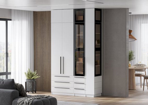 Лицевая фурнитура отсутствует. На фасадах установлена система открывания PUSH-TO-OPEN.