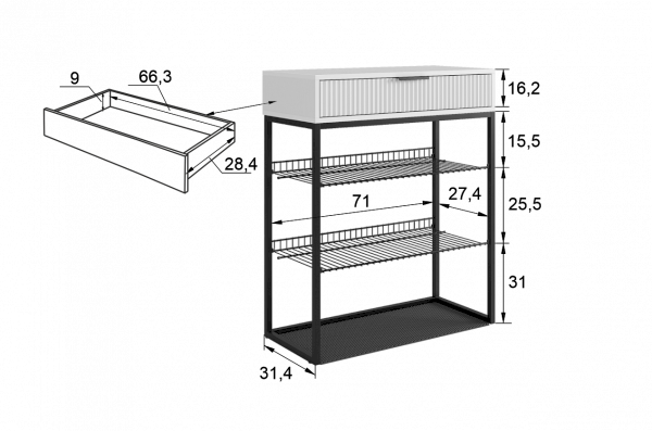 В комплект прихожей входят следующие позиции: