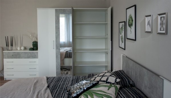 Классический распашной четырехдверный шкаф выполнен в стиле минимализм: строгие линии, идеальные пропорции. Нейтральные цвета шкафа подойдут для любого стиля интерьера, их можно сочетать со множеством ярких и насыщенных оттенков тем самым полностью преображая пространство. Зеркала на центральных фасадах сделают спальню светлее и просторнее. Идеально компонуется со всеми модулями системы Аврора. Мебель выполнена из высококачественных материалов.