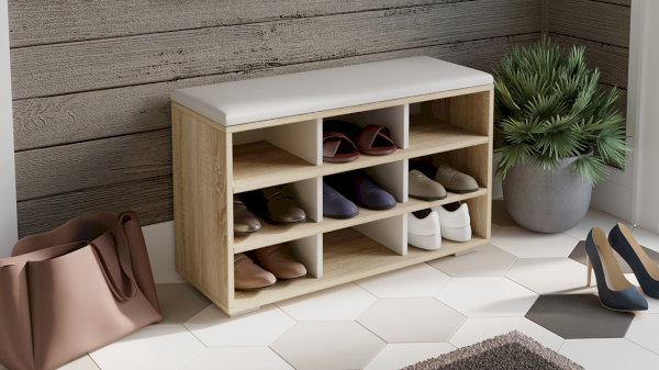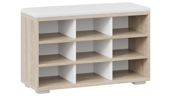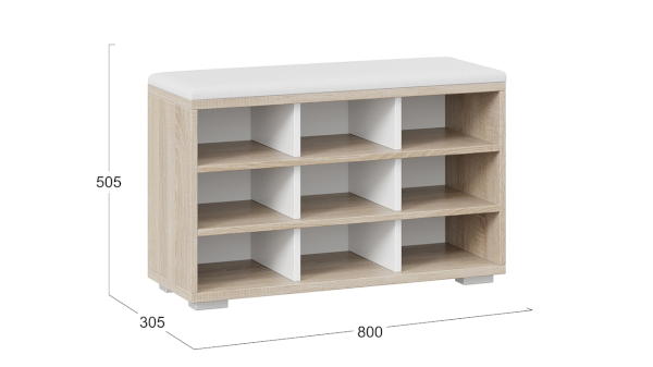 Модель оснащена открытыми полками для обуви, что позволяет быстро найти нужную пару, не тратя лишнего времени. Для удобства эксплуатации тумба оборудована мягким сиденьем, тем самым не только добавит уюта, но и сделает процесс переобувания более комфортным.