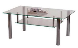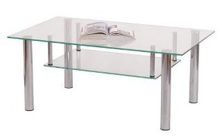 Журнальный стол - стеклянная прямоугольная столешница с полкой, ножки с фетровыми подпятниками.