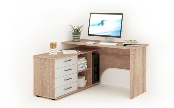 Стол письменный угловой – удобное рабочее место для студента, школьника, отличное решение для кабинета с интерьером в скандинавском стиле. На широкой столешнице легко поместится монитор, клавиатура и документы, на угловой части можно разместить оргтехнику. В столе выделено место для системного блока и для письменных принадлежностей. Его можно укомплектовать надставкой с множеством полок для папок, книг и декора. В столах системы Гарвард мягкие, удобные для опирающихся рук края, с кромкой в 2мм, а также, скруглённые углы столешницы. Корпус выполнен в теплом древесном цвете светлого дуба с приятной на ощупь фактурой, фасады - белые матовые. Нейтральные оттенки мебели позволяют легко вписаться уже в готовый интерьер.