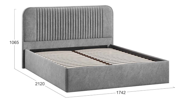 Каркас кровати усилен поперечной и продольной опорами, что гарантирует максимальную устойчивость конструкции. Важной и функциональной деталью также является возможность рационального хранения, поэтому кровать оборудована подъемным механизмом, обеспечивающим верхнюю фиксацию и удобный доступ к месту для хранения.