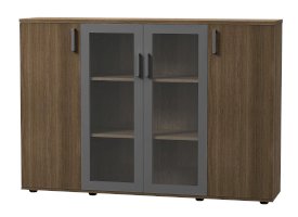 Вместительная тумба для документов, отличительная особенность - стеклянные дверцы, придающие конструкции визуальную легкость.